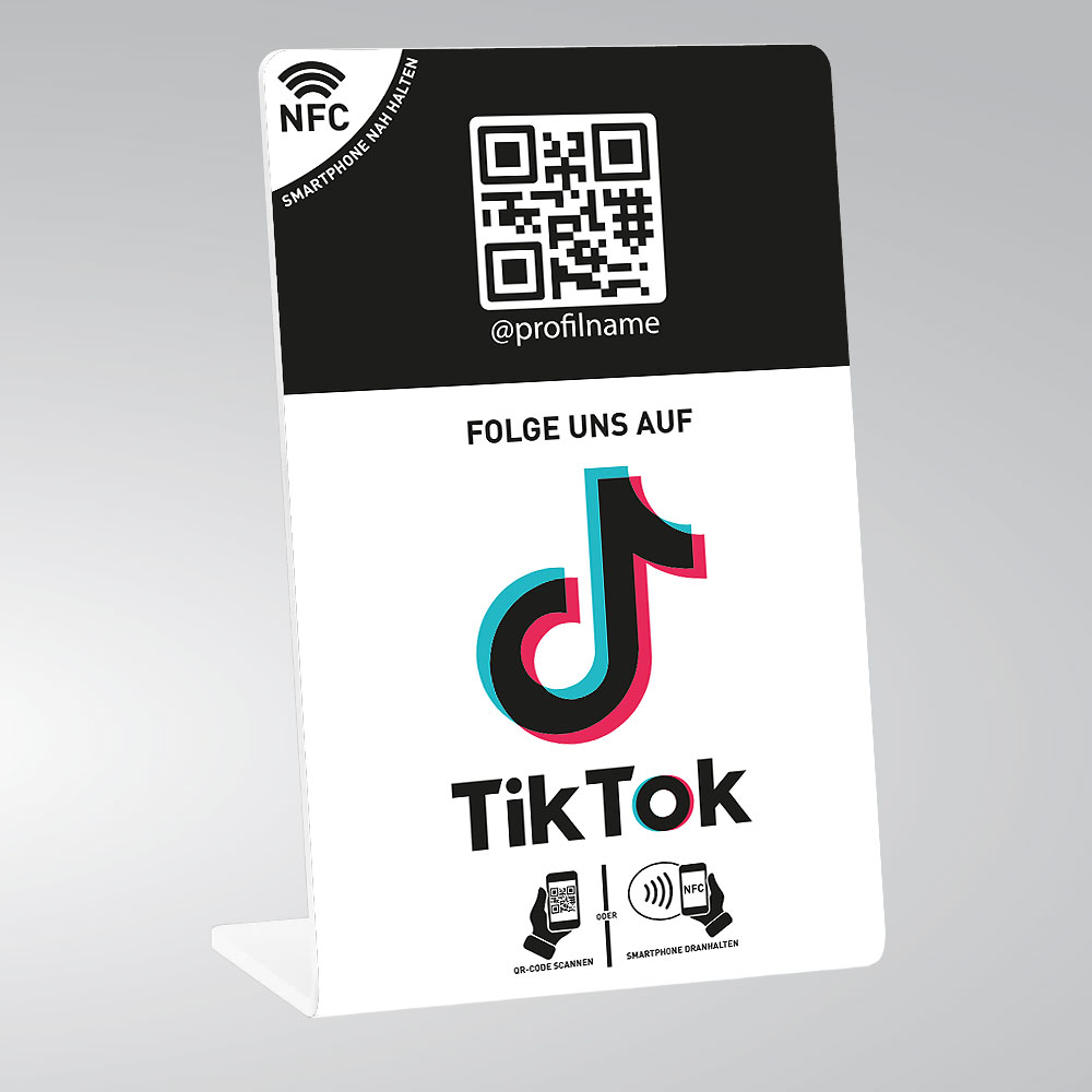 TikTok NFC QR-Code Tischaufsteller schwarz weiß